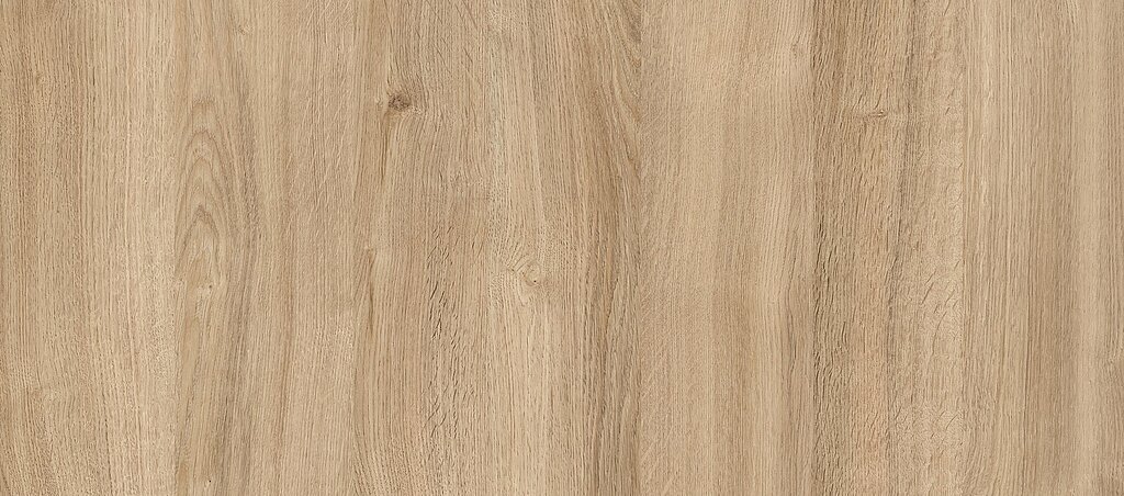 Dekor zawiera wiele charakterystycznych, typowych dla drewna dębowego elementów – powstał na bazie różnych struktur dębowych. Layout wyróżniają czarne pory drewna oraz niewielkie, delikatne sęki. Dzięki swej różnorodnej i mocno podkreślonej strukturze staje się wręcz plastyczny w charakterze. Znajdzie zastosowanie na wszelakich elementach meblowych.