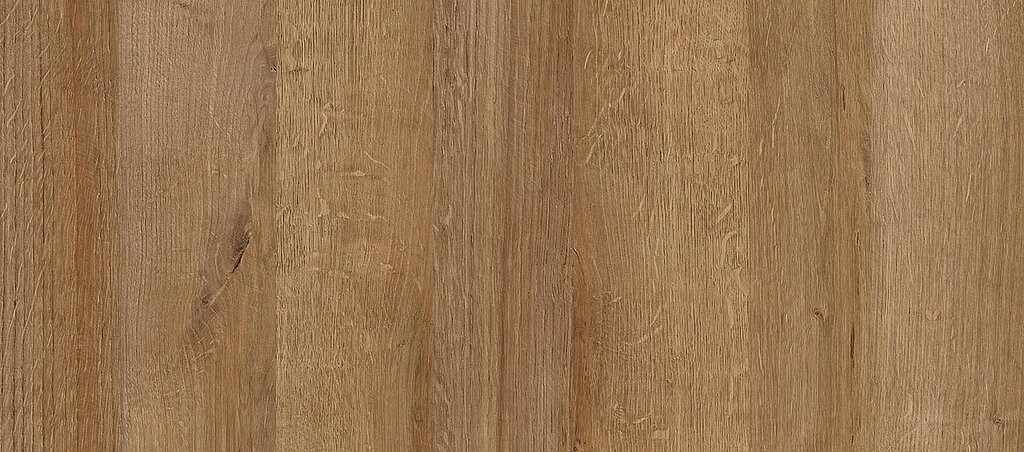 The RIVIERA OAK has a very natural appearance. Its harmonious overall picture shows many details that are very typical for oak. Pronounced silver grain and medullary rays, streaky and floral areas alternate and create a subtle plank pattern. The Riviera Oak works in both classic and modern kitchens. In the kitchen segment, it has established itself as one of our highlight decors since 2016, especially in honey color. Beautiful harmonies result here with the TORANO stone decor in classic black and white marbling.