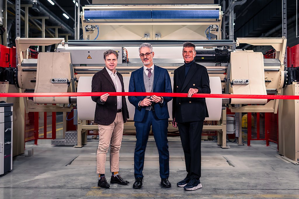 PMI 025是意大利生产基地的第六台浸渍设备。这台长达83米的巨型设备可实现卓越的生产速度,并能处理更大尺寸的纸张——最大幅宽达2.80米,浸渍速度高达90米/分钟。 凭借其十二组干燥烘箱,该设备将在处理国际订单中发挥核心作用。其专攻双幅面白纸和花色饰面处理技术——这是迈向未来生产的重要一步。 意大利工厂内专用于浸渍设备的场地面积超过5000平方米。目前已有五条生产线投入运行:包括一台罗拓设备、三台Tocchio设备,以及一台自1998年罗萨泰基地启用以来持续运转的VITS设备。如今,全新的PMI 025与之并列——这是VITS安装的第二台设备。
